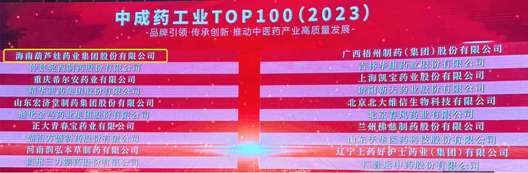 会上,还发布了“2023中成药工业TOP100”榜单,利来w66药业集团荣耀上榜。